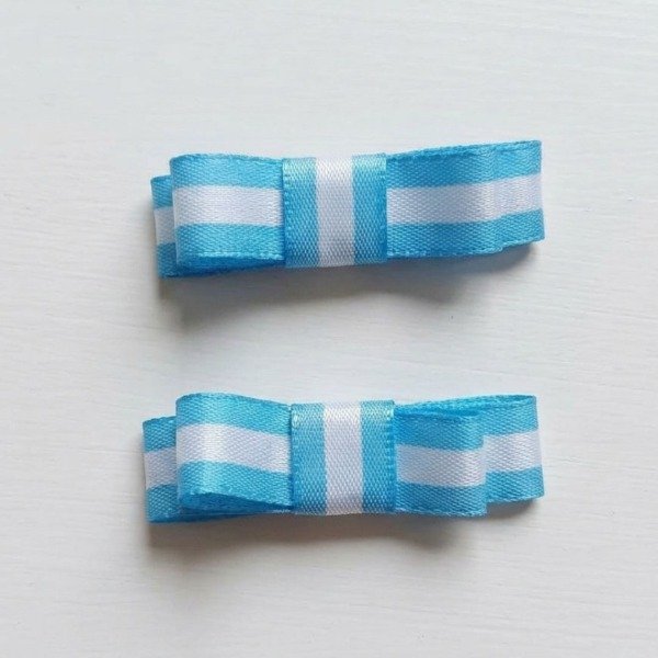 moño en tonos celeste y blanco, clip firme que sujeta bien el cabello, diseño liviano y cómodo para niñas