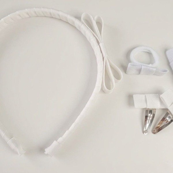 Incluye vincha con moño + par de gomitas con moño + par de tic tac con moño