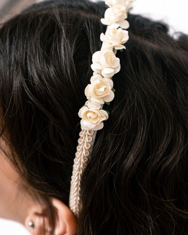 vincha con flores delicadas, diseño liviano, fácil de colocar en diferentes peinados