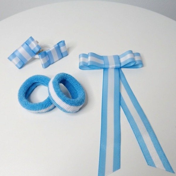Incluye un moño con lazo y dos gomitas con flores mas un par de gomitas de toalla de Argentina.